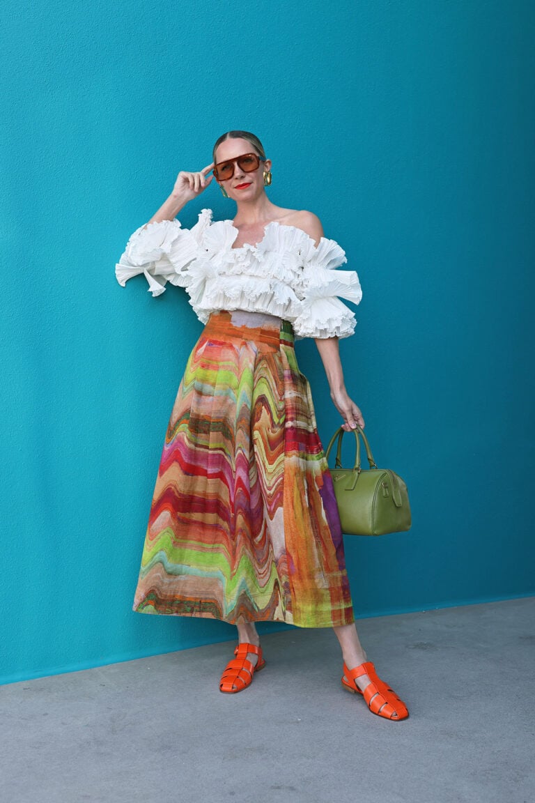 Skirt: Ulla Johnson // Top: Rosie Assoulin (old) // Shoes: Gabriela Hearst (similar here) // Sunglasses: Elisa Johnson // Bag: Prada